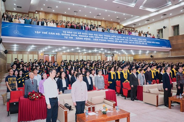 Sáng ngày 24/10/2025, tại hội trường A2 – Học viện Công nghệ Bưu chính Viễn thông (PTIT) long trọng tổ chức lễ trao bằng cho 750 sinh viên khối ngành truyền thông và kinh tế trong đó có 110 sinh viên ngành Truyền thông Đa phương tiện. Tham dự chương trình, có GS.TS Từ Minh Phương – Chủ tịch Hội đồng Học viện, PGS.TS Đặng Hoài Bắc – Giám đốc Học viện, PGS.TS Trần Quang Anh – Phó Giám đốc học viện, TS. Nguyễn Trung Kiên – Phó Giám đốc học viện cùng Lãnh đạo các khoa, phòng, ban chức năng, giảng viên Học viện.