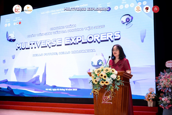 Tối ngày 02/10/2025, tại Hội trường A2 – Học viện Công nghệ Bưu chính Viễn thông, chương trình chào tân sinh viên Khoa Đa phương tiện 2025 đã diễn ra trong không khí sôi động thu hút sự tham dự của hơn 700 sinh viên trong và ngoài Học viện. Chương trình rất vinh dự khi được đón tiếp quý đại biểu, đại diện các tổ chức và doanh nghiệp đối tác, đại diện lãnh đạo Khoa, các Trung tâm và phòng ban chức năng, quý thầy cô giảng viên, tân sinh viên khóa D25 cùng đông đảo sinh viên các khóa. Với chủ đề “MULTIVERSE EXPLORERS – KHỞI HÀNH VÀO VŨ TRỤ ĐA PHƯƠNG TIỆN”, đêm nhạc hội không chỉ đơn thuần là sự kiện chào mừng mà còn là cột mốc đánh dấu bước khởi đầu cho hành trình trưởng thành và khám phá của các bạn tân sinh viên D25.