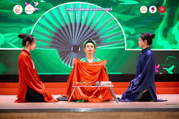 Bên cạnh đó, tiết mục diễn xướng tái hiện nghi thức lên đồng (hầu đồng) được dàn dựng công phu đã ghi dấu ấn sâu đậm trong lòng khán giả. Sự kết hợp giữa yếu tố văn hóa truyền thống, âm nhạc, trang phục và hiệu ứng sân khấu đã tạo nên một không gian trình diễn ấn tượng, thể hiện rõ bản sắc nghệ thuật và khả năng phối hợp chuyên nghiệp của sinh viên Khoa.