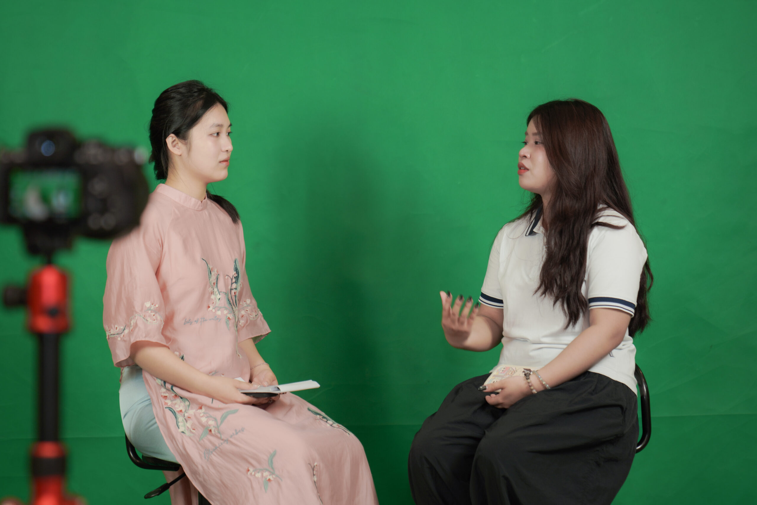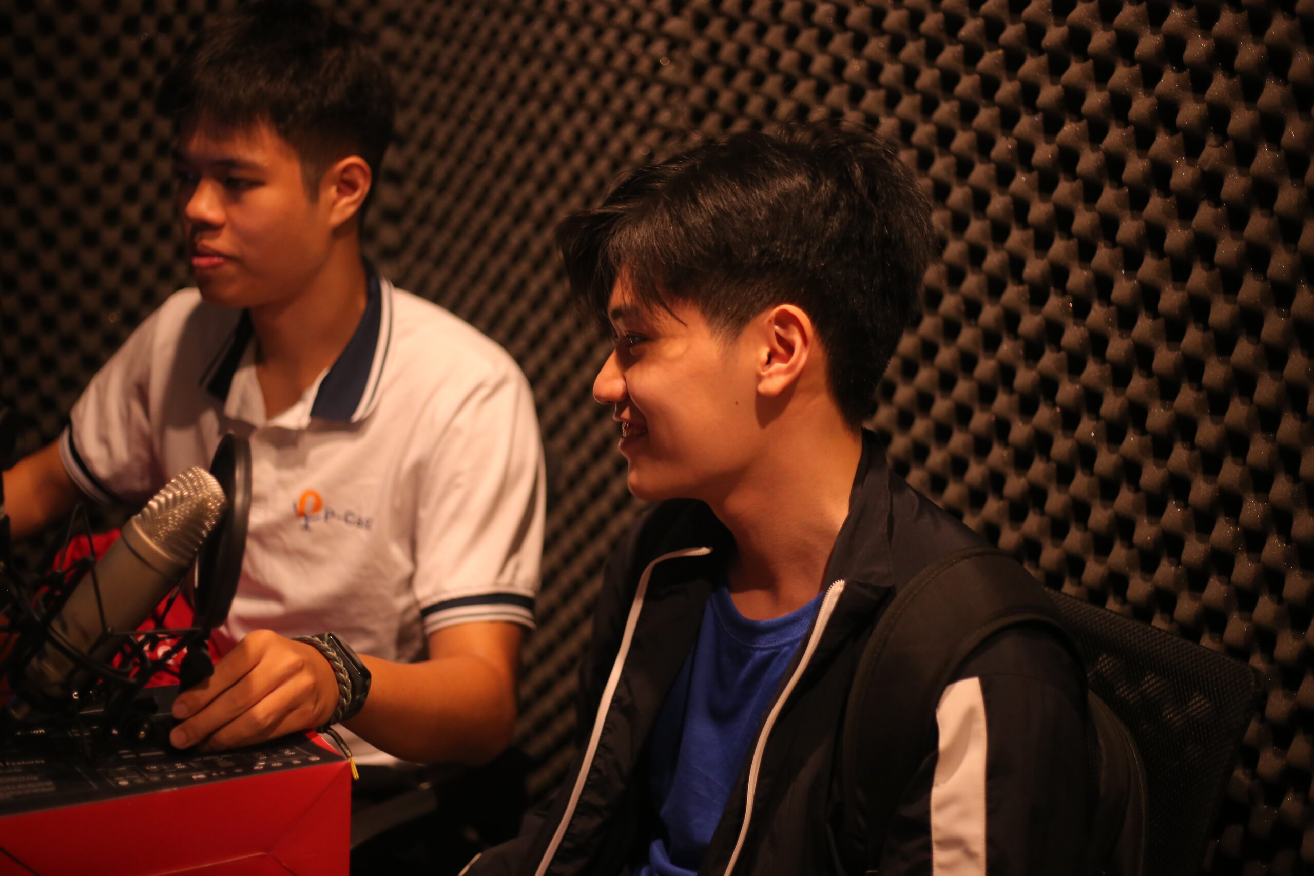 Các bạn học sinh được tham gia hoạt động trải nghiệm làm MC, Podcast tại Studio Khoa Đa phương tiện…
